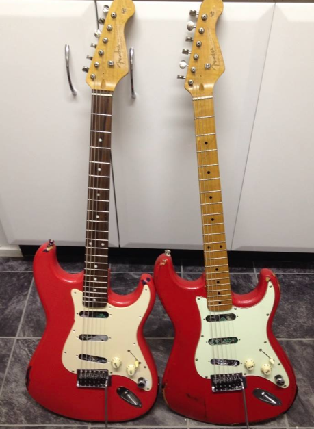 clay-man Posted December 14, 2013 Author Share Posted December 14, 2013 Hi Clay Man as a past 600 user, I can feel your pain. I used the lot - on my 1970 strat I used to be able to get away with using graphite on the nut (it had a brass nut, and it was pretty good), then the last refret it had the nut replaced with a graphtech one. No tuning problems! I got the 600 as I was a trem user, and tried everything to remedy the problem to no avail. It doesn't matter so much about the nut (I replaced the nut with a graphtech Tusq-X or whatever - easy enough to do, just sand it down on the underside so it's the same height as the one you're replacing). The problem is the poor quality metal where the bridge pivots on it's two posts - mine had badly worn and no way was it ever gonna return to zero. This gave me the next dilemma - replace the trem or transplant the guts into another body? I believe the original strat trem with six screws securing it to the body is far superior to the commonly found two post system for tuning stability, and this is supported by my resultant transplants (one from a 300, one from a 600) into a couple of cheap ($100 each from pawn shops) SX Vintage series strat copies, with the Graphtech Ghost saddles, and Tusq-X nut installed, giving me as close to perfect tuning as I've ever had, even with heavy trem use. A bit of work there, but if you're handy with tools, it's totally do-able. Now will the real Fiesta Red Strat please step forward?Screen shot 2013-12-14 at 10.42.20 AM.png Thanks for the info. I have a problem with the zero-point on my guitar too. I agree the 2 post thing is probably a cause for it, because I wouldn't be surprised when I push down the trem, the bridge gets dispositioned a bit causing it to go out of tune. I'm sure a mag-lok would fix that though. It's annoying having to fix the guitar up when it should be at least decent to use. I think a tusq nut and a mag-lok would fix it up though. I also might need fretwork because my action is a bit too high for my taste, and it buzzes if I try to push it any lower. Quote Link to comment Share on other sites More sharing options...