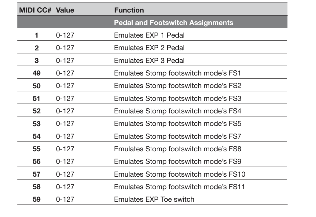 phil_m Posted September 23, 2021 Share Posted September 23, 2021 2 minutes ago, rd2rk said: Exactly what they are NOT doing. They're supposed to react to 127 by turning ON, and 0 by turning OFF. That's what that second column 0-127 means. What they're doing is toggling the ON/OFF status of the FS REGARDLESS of the Value sent with the CC. WRONG! No, man, sorry. look at the way the other CCs that are set up as on/off for different values are documented. These are simply a trigger. There’s no on/off state. It’s just like hitting the footswitch. This is how all the Line 6 floor processors have worked going back to at least the X3L. Quote Link to comment Share on other sites More sharing options...