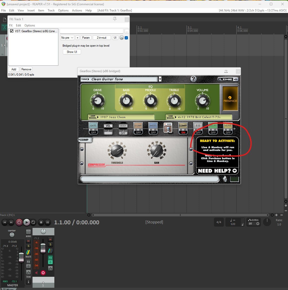 aleshin Posted Monday at 06:05 PM Author Share Posted Monday at 06:05 PM Of course all other VST plugins work perfect. Yes, I connect guitar with help cabel direct to my UX1. Im sure problem with not working Monkey ... I consider this a rip-off and a rip-off of their customers, depriving them of the full functionality of the device. They simply disabled the server that allowed the monkey to confirm the sound card's registration status, and now we see problems when loading GearBox into VST mode. Quote Link to comment Share on other sites More sharing options...