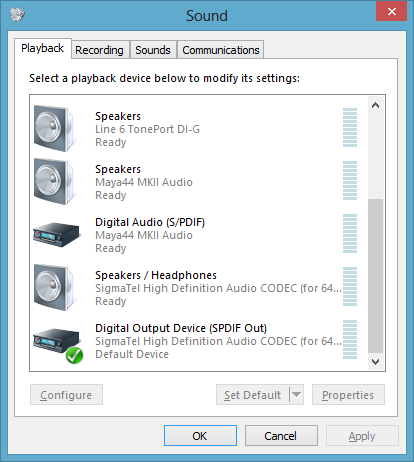 TheRealZap Posted June 5, 2013 Share Posted June 5, 2013 I think your drivers need uninstalled and reinstalled. the screenshot above only shows the digital out as available and as default.. so unless you have something hooked up to your SPDIF out you wouldn't hear anything. it should show a "speakers" option like the line6 device in my screenshot. Quote Link to comment Share on other sites More sharing options...